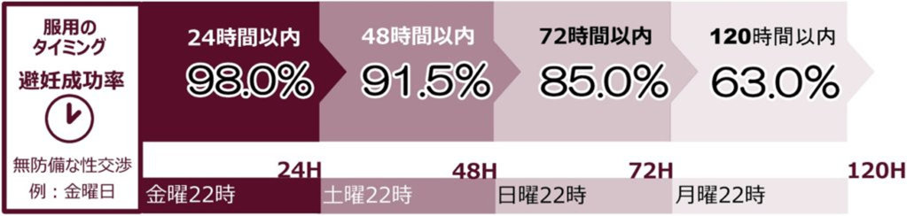 アフターピルは、性交渉の24時間以内の服用で、80%〜95%ほどの避妊効果があります。これの服用が排卵日後であっても避妊の成功率が劇的に大きく変わることはありません。しかし、どのタイミングでも対応が必要であればそれが早いに越したことはありません。