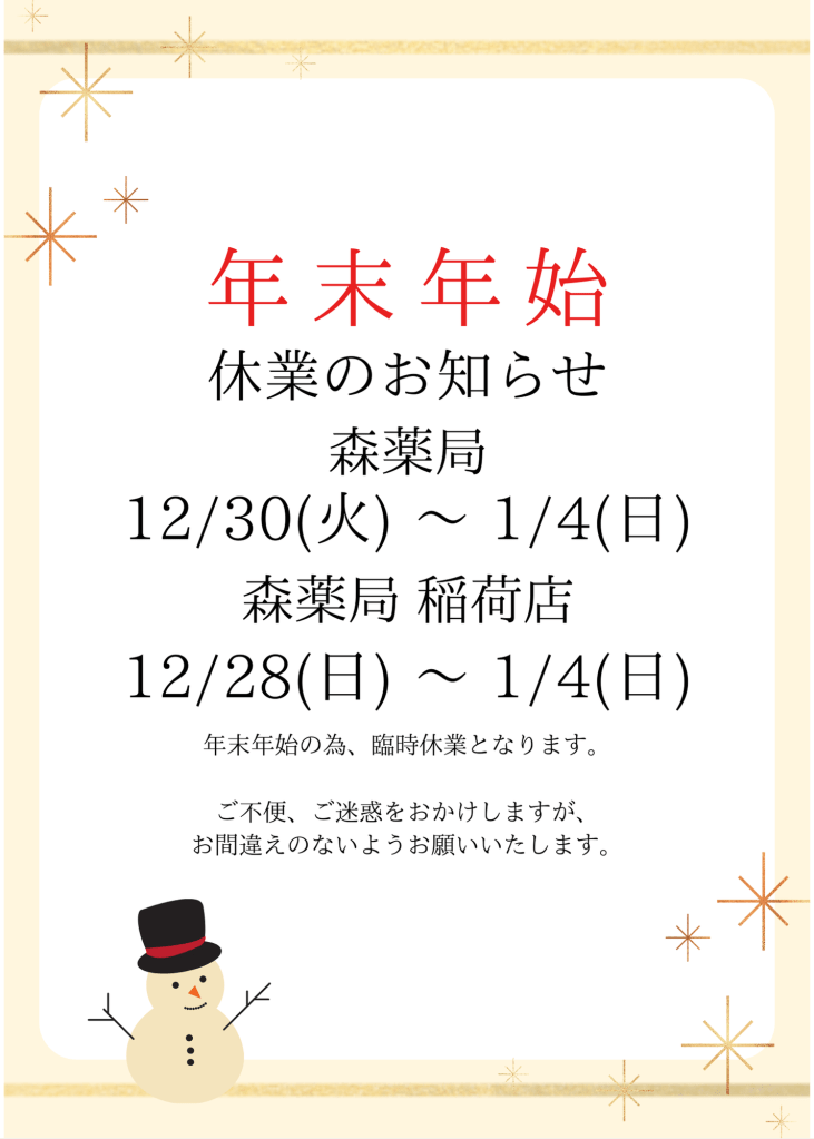 森薬局 稲荷店 12/28(日) ~ 1/4 (日)
